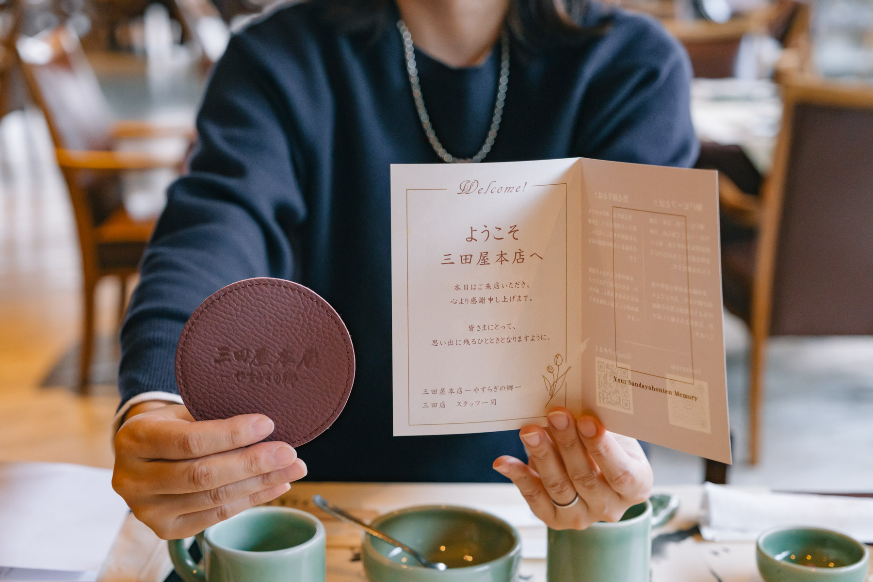 「シェアコース」には、お口直し用のタブレットやスマホが拭けるクロスなどが入ったエチケットセットに加え、当日の記念写真を添えた特製カード。そして「和牛神コース」には、神戸牛皮革を使用した、高級感たっぷりのオリジナルコースターがプレゼントされます。