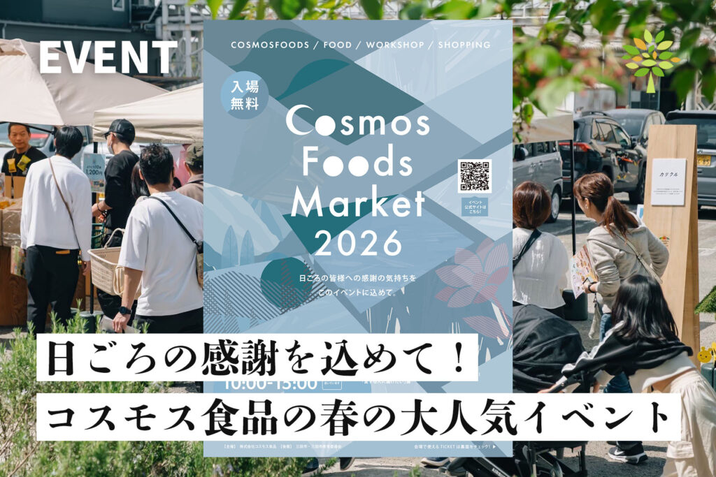 2026年4月18日(土)、三田市下内神にあるコスモス食品本社にて、「Cosmos Foods Market 2026」が開催されます!昨年は【EXPO】として開催されましたが、今年は「日ごろの... -
