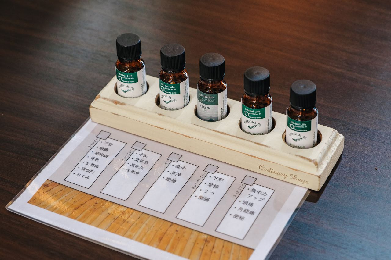 次に、5種類のオイルの中から好きなものを1つ選びます。試しに香りを嗅がせてもらって、爽やかな香りのスペアミントをチョイスしてみました。