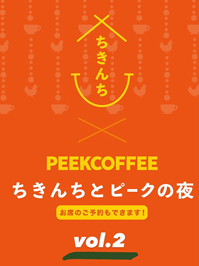 | 2月21日(土) | ![]() | ちきんちとピークの夜 vol.2 時間:17:00~22:00 場所:食堂ちきんち(西宮市山口町下山口1-8-19) 料金:メニューによる異なる |