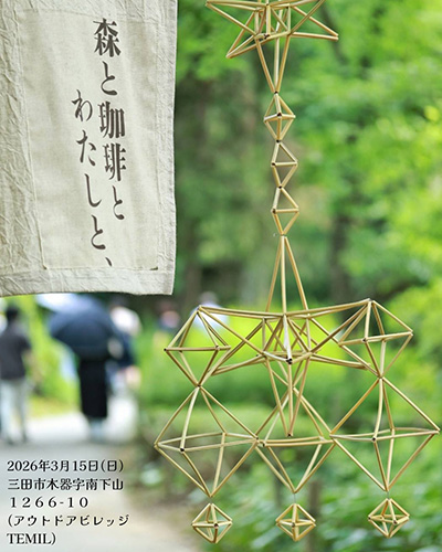 | 3月15日(日) | ![]() | 森と珈琲とわたしと、 時間:11:00~16:00 場所:神戸三田アウトドアビレッジTEMIL 料金:入場無料 |