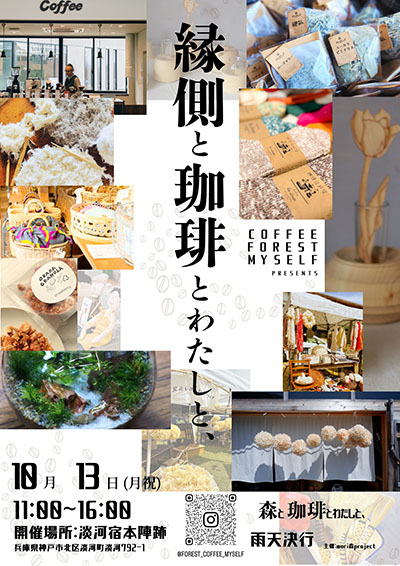 10月13日(月祝) | ![]() | 縁側と珈琲とわたしと、 時間:11:00~16:00 場所:淡河宿本陣跡(神戸市北区淡河町淡河792−1) 料金:入場無料 |