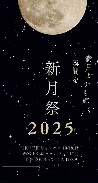 10月18日(土)・19日(日) | ![]() | 関西学院大学 新月祭 2025 (神戸三田キャンパス) 時間:【土】10:00~18:00【日】10:00~17:00 場所:関西学院大学 神戸三田キャンパス 料金:入場無料 |