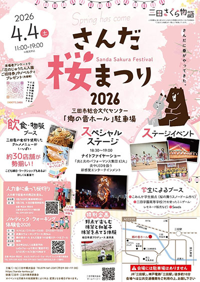 | 4月4日(土) | 場所:三田市総合文化センター 郷の音ホール 駐車場 料金:入場無料 | |