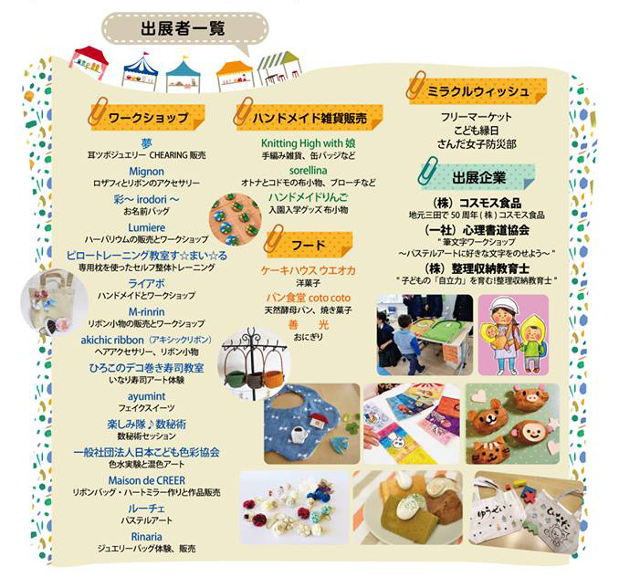 - ミラクルウィッシュ:フリーマーケット、こども縁日、さんだ女子防災部