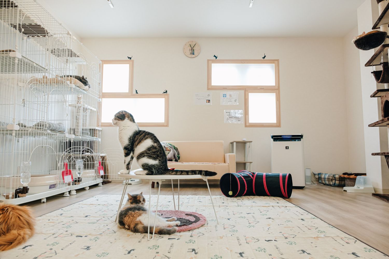 お部屋の中には取材日時点で、11匹の猫ちゃんたちが暮らしていました。中には5月に生まれたばかりの子猫も4匹!入室前に必ず手洗いと消毒を済ませてから、お部屋に入りましょう。