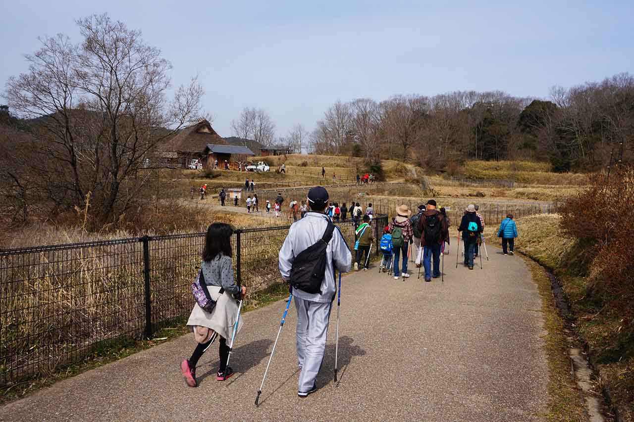 出合いの広場をスタートして、有馬富士が見える公園の北側に向かって歩いていきます。この日は3月上旬にしては気温も高く、日陰のひんやりとした空気がちょうど心地いいくらいでした。