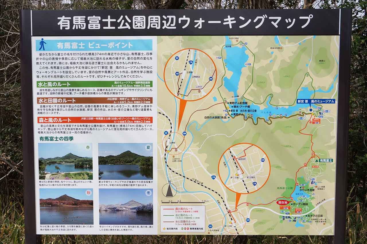 公園内には有馬富士公園周辺のウォーキングマップも紹介してありました。このイベントを機に、こうした周辺地域でもノルディック・ウォーキングを楽しむ方の姿が見られそうですね。