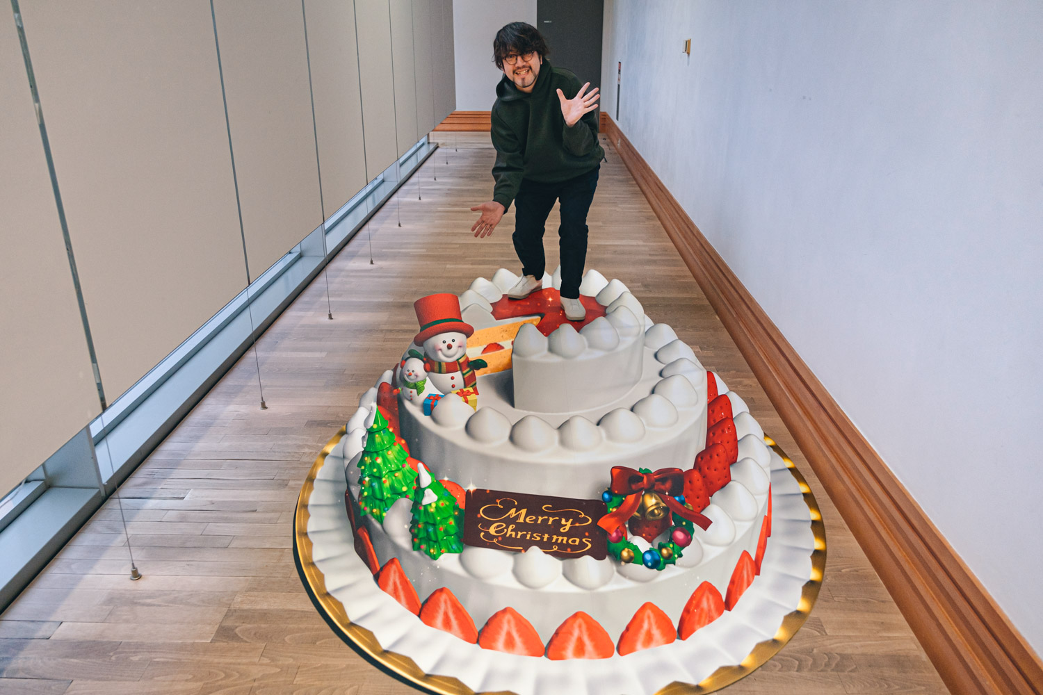 こちらのトリックアートは、クリスマス翌日の12月26日(日)まで展示されていますので、みんなで楽しい写真をいっぱい撮りまくっちゃいましょう。