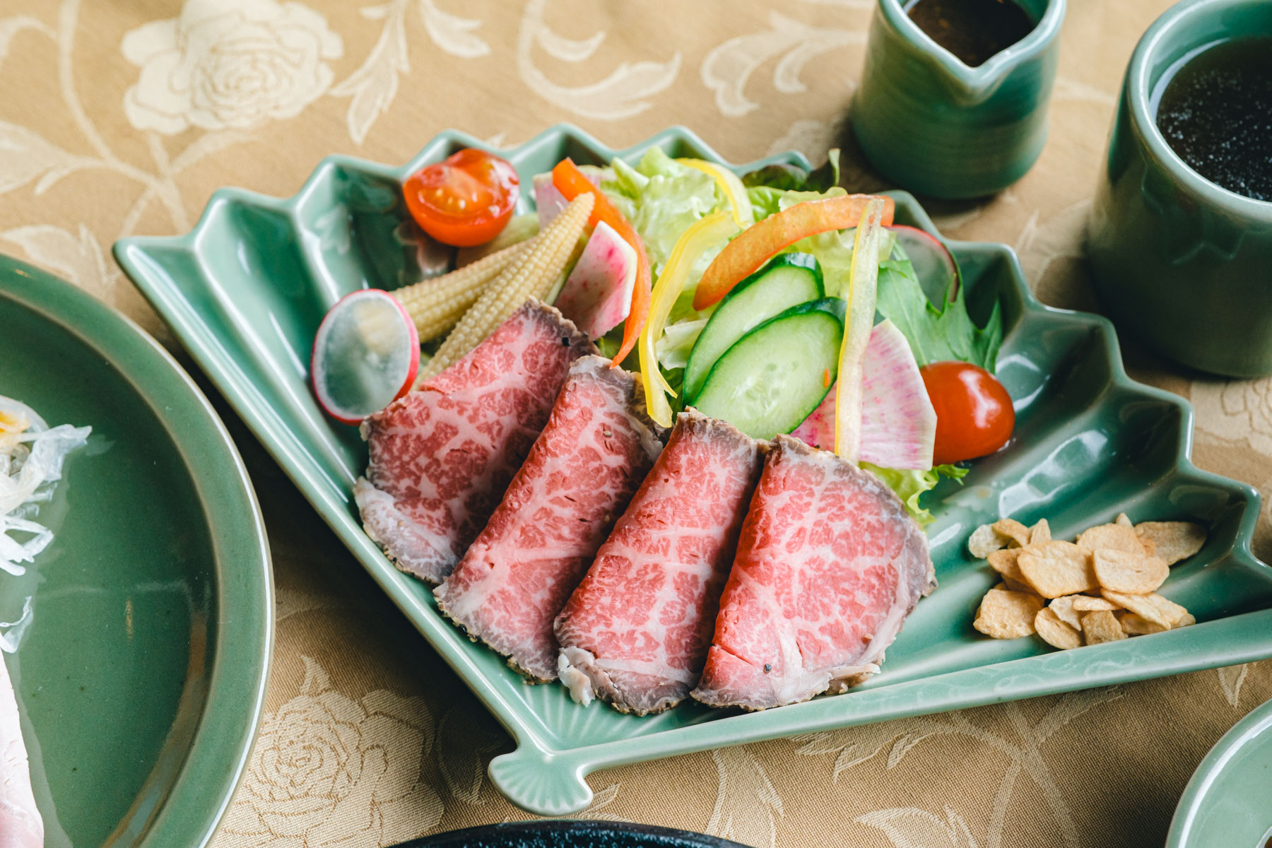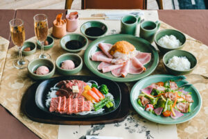和牛の中でも特に名高い「神戸ビーフ」と、三田屋本店が選び抜いた和牛とを食べ比べできる、贅沢なラインナップ。さらに料理を彩るのは、三田ゆかりの伝統工芸「三田青磁」の器。目にも美しく、特別感をより一層引き立ててくれます。
