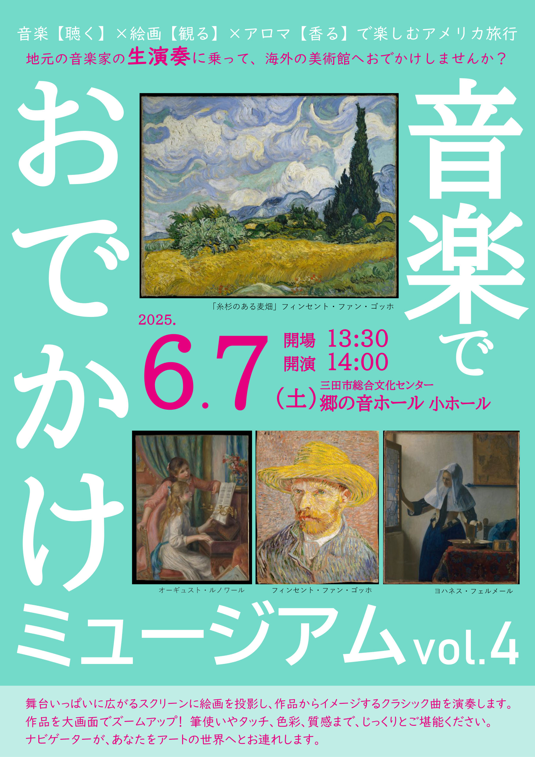 【音楽でおでかけミュージアムvol.4】ゴッホやフェルメールの世界を音楽と香りで体感!6月7日(土)に郷の音ホールで開催