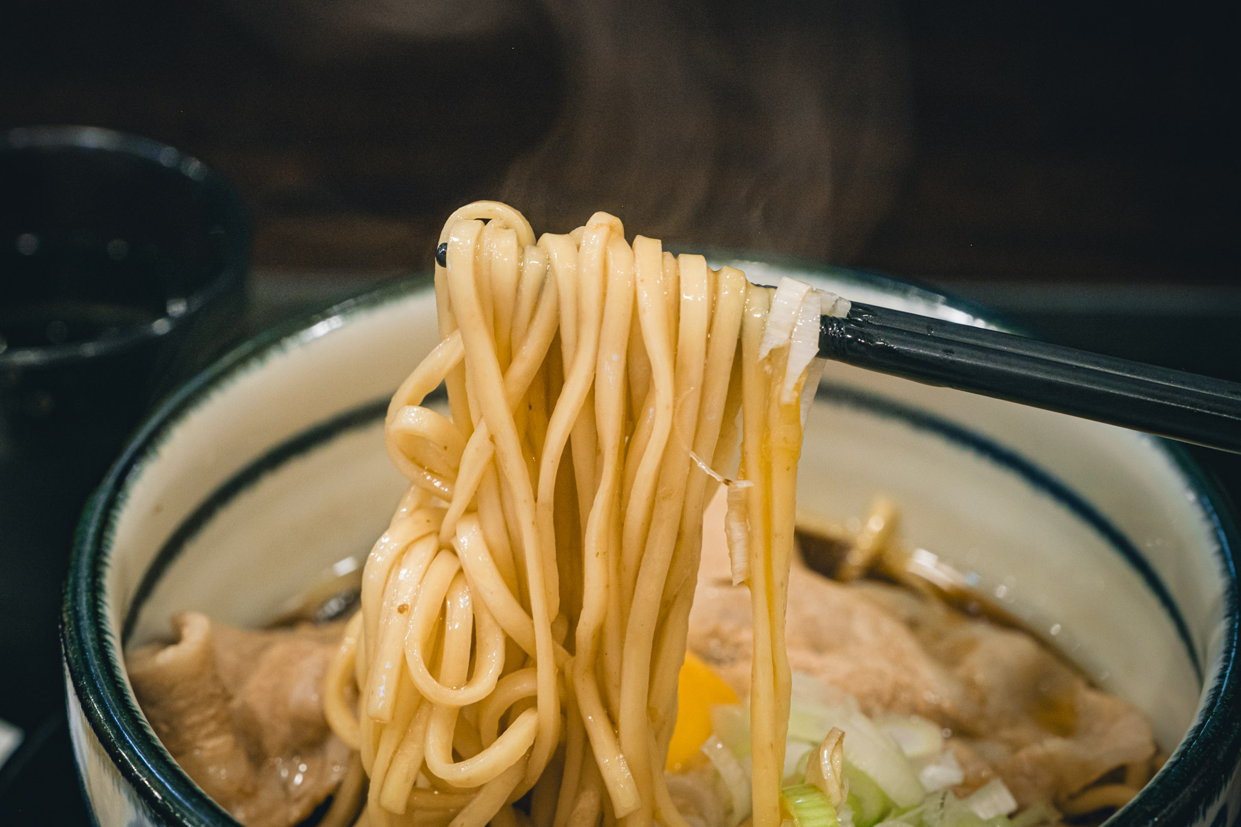 気になる麺は、小麦の配合から見直して開発されたという平打ち麺。ほどよい太さで歯切れがよく、すすった瞬間のつるっとした食感と喉ごしがたまりません。