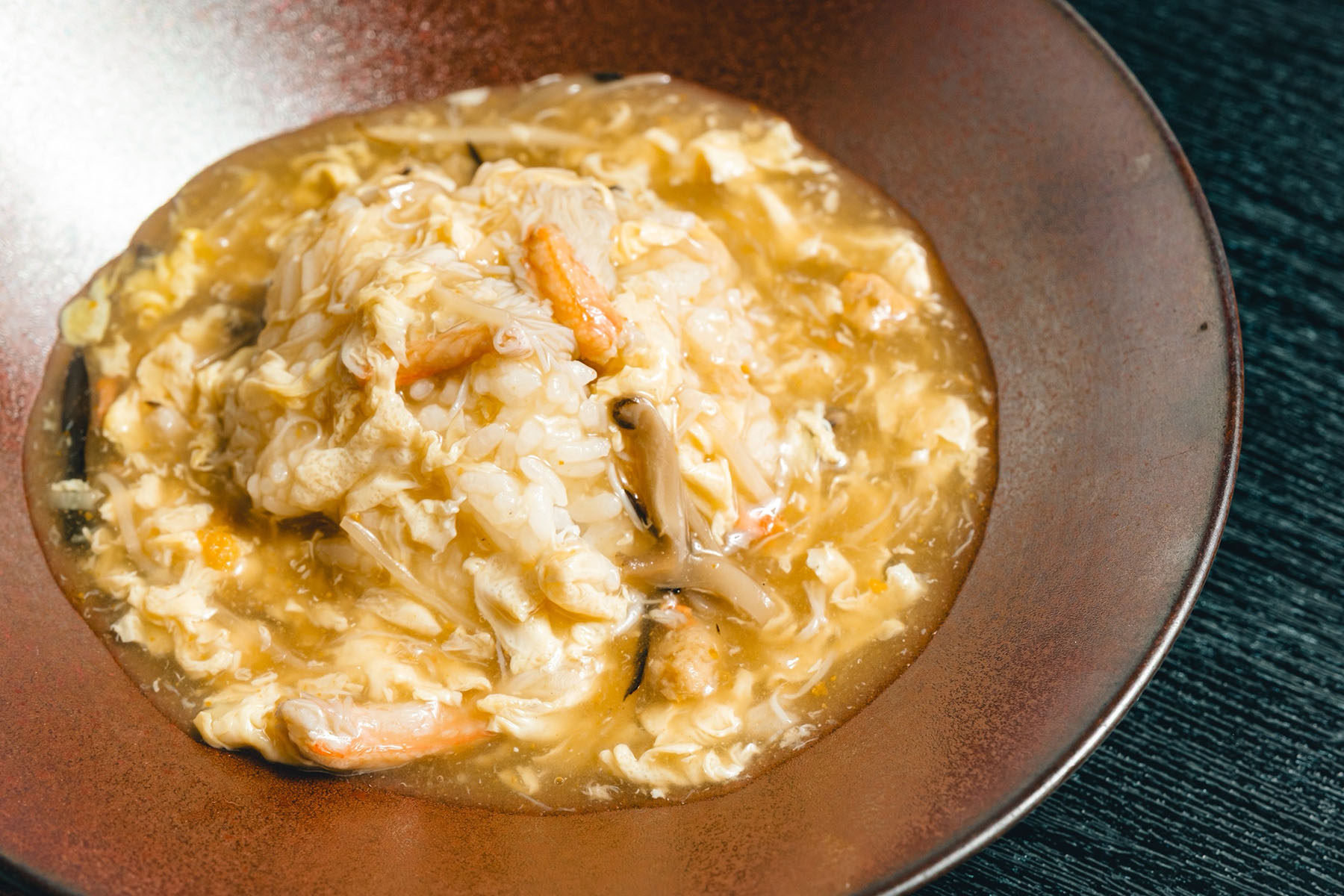 そして今月のご飯物は「上海蟹の餡掛け炒飯」。ふんわり炒めた炒飯の上に、濃厚な上海蟹の旨みをとじ込めたとろ〜り餡がたっぷり!ひと口すくうたびに、蟹の風味と卵のやさしいとろみが一体となって、じんわりと幸せが広がります。