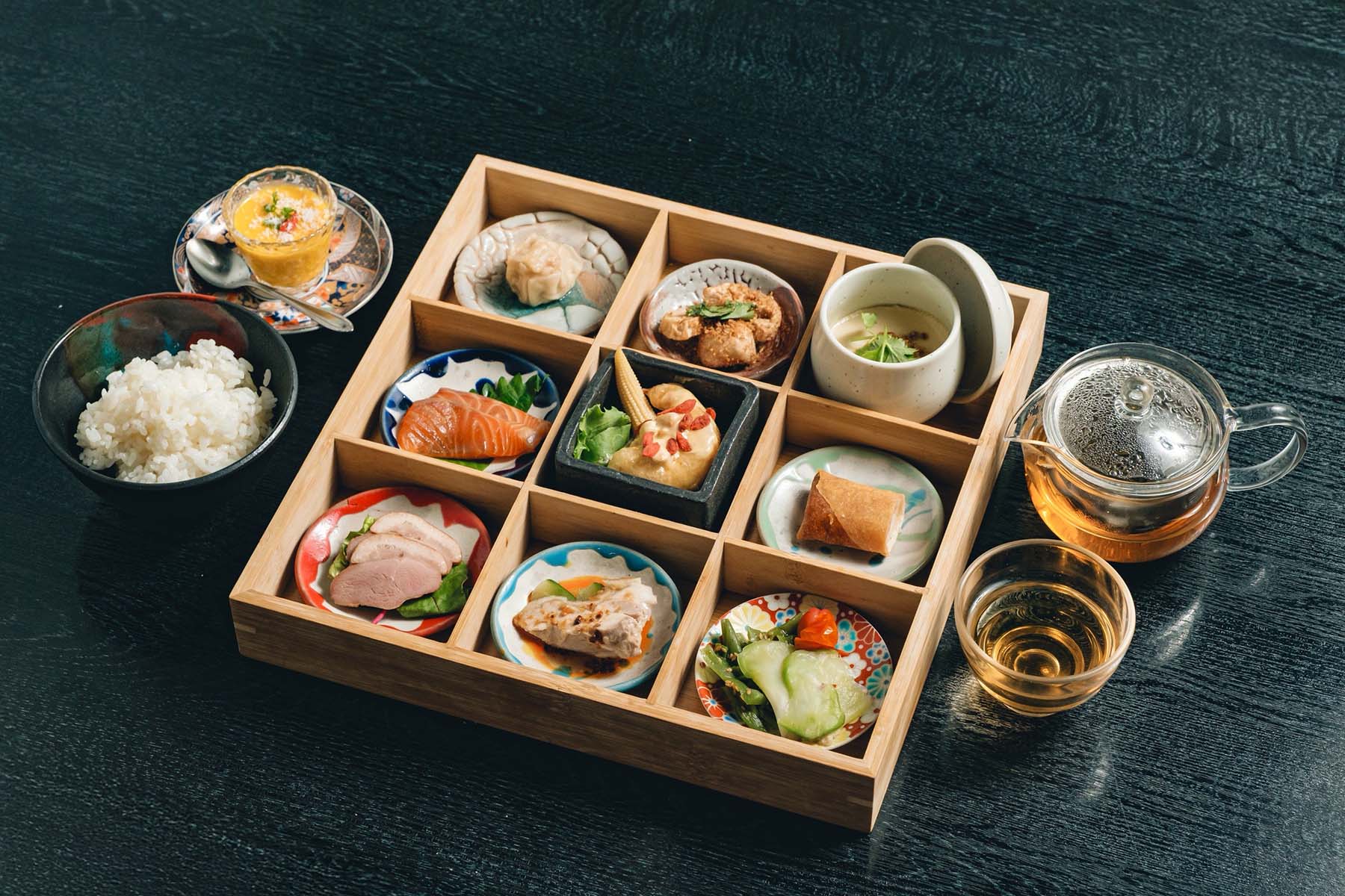 - 価格:9升の木箱ランチ2,000円(税込)、ご予約限定ランチコース2,400円〜(税込)