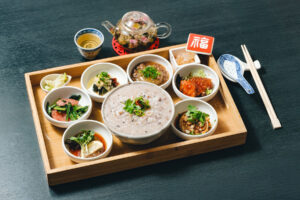 ふんわり香る「合鴨のジャスミン茶燻製」や、サクッと香ばしい「根菜の金沙唐揚げ」、まろやかな「かぶらの中華ポタージュ」など、バランスの取れた味わいが勢ぞろい。さらに、丹波篠山産の白ご飯や中国茶、デザートのココナッツミルクプリンまで付いた、満足度の高い内容です。