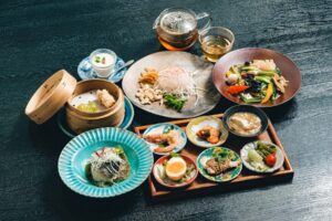 前菜7品がお皿に乗った豪華盛り合わせをはじめ、薬膳美人粥に点心、春巻き、本日の一皿にデザートまで付いたコースが新登場!こちらはランチとディナータイムの両方でいただくことができます。