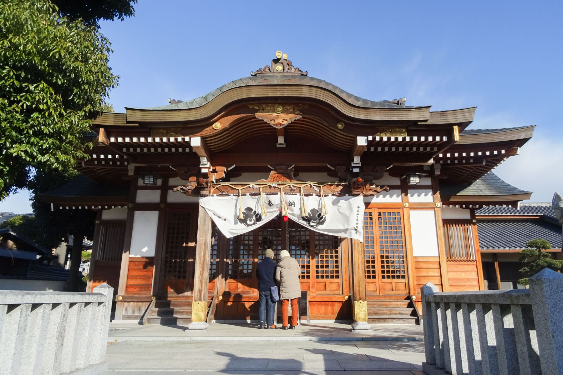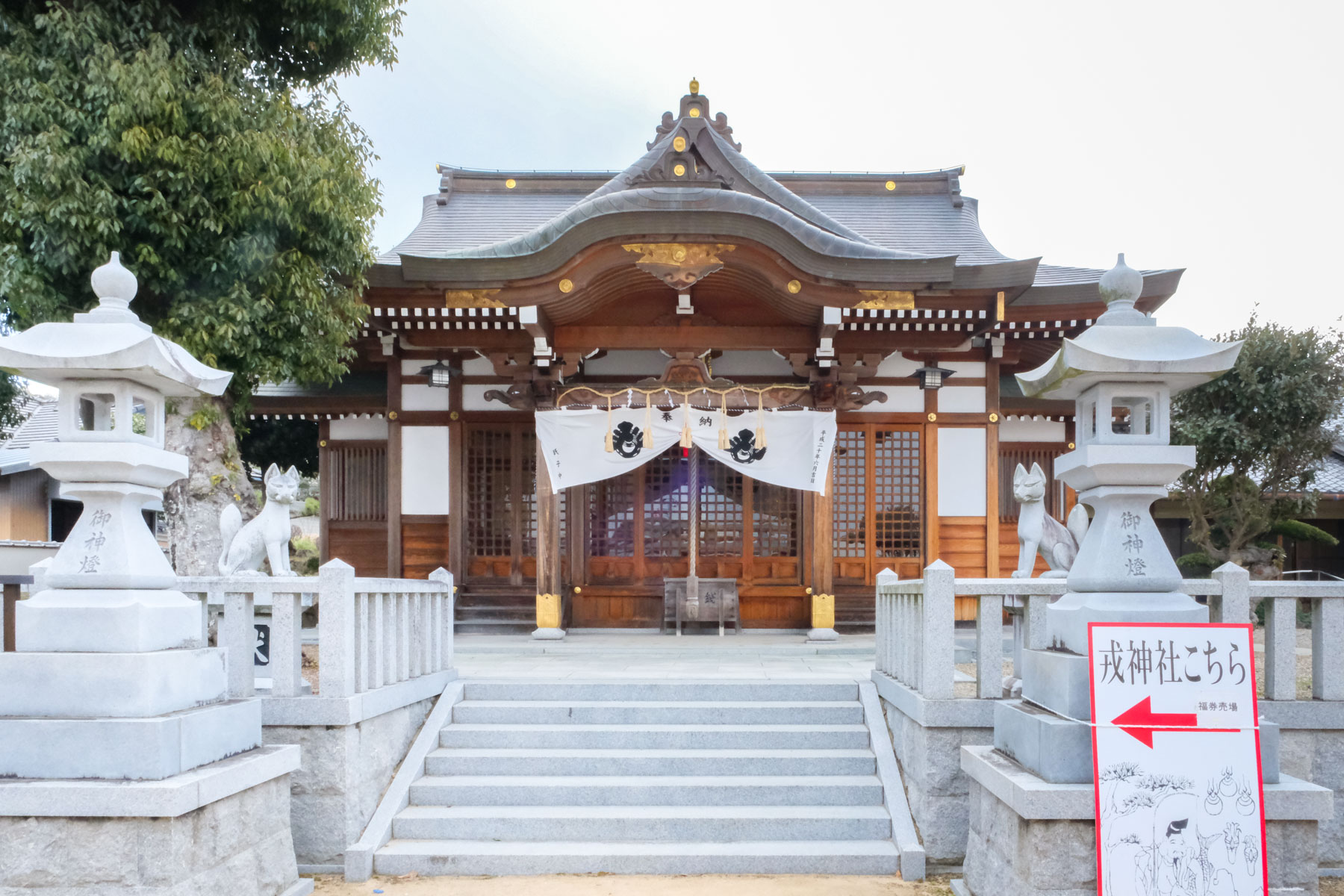 「三田福島戎神社」は、「福島稲荷神社」の境内にあります。今回「十日えびす」で初めて来たのですが、小じんまりとしながらもきれいに整えられた敷地と厳かなお社、そして奥に見える緑が印象的で、心が落ち着き親しみがわく神社でした。