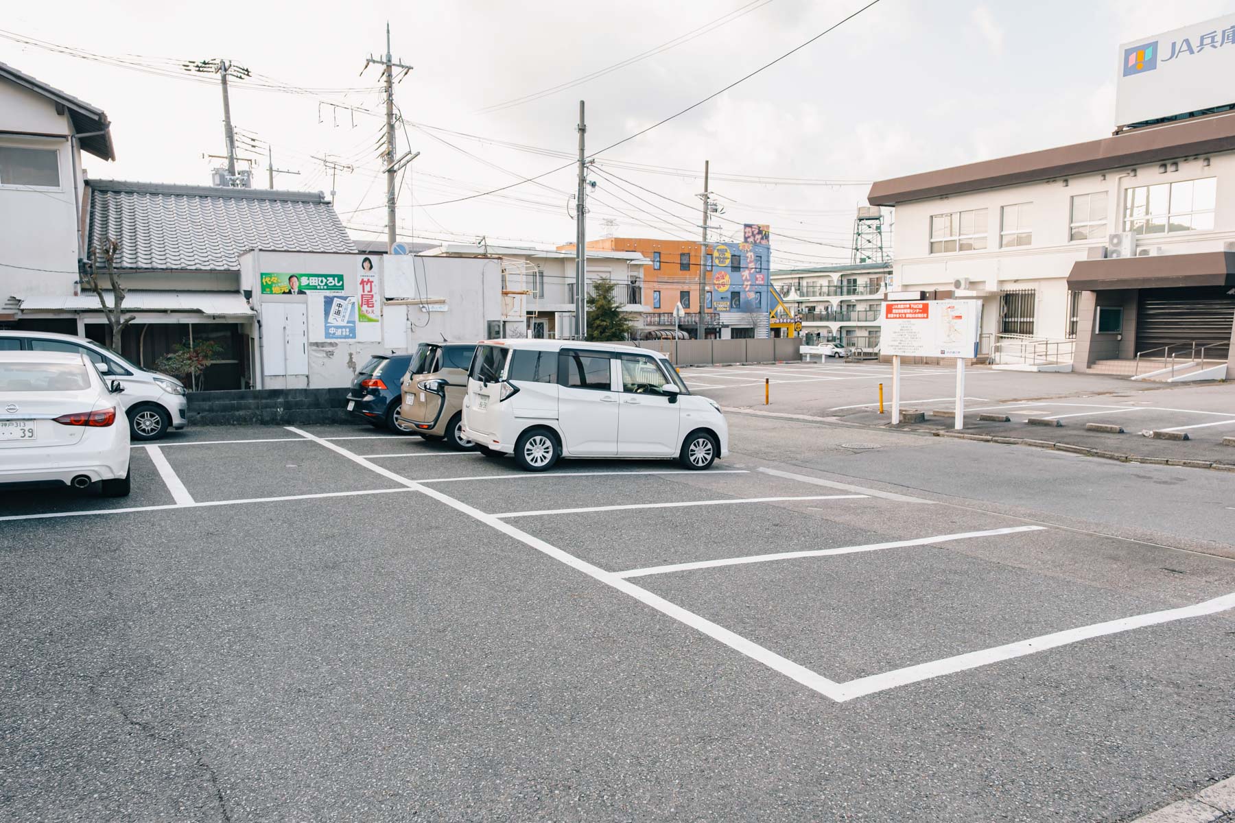 駐車場は、JA兵庫六甲山口支店の道路を挟んで向かい側にある6台と、すぐ後ろ1台分の合わせて7台の駐車が可能です。台数が限られているので、1グループにつき1台での乗り合せで行くようご協力お願いします。