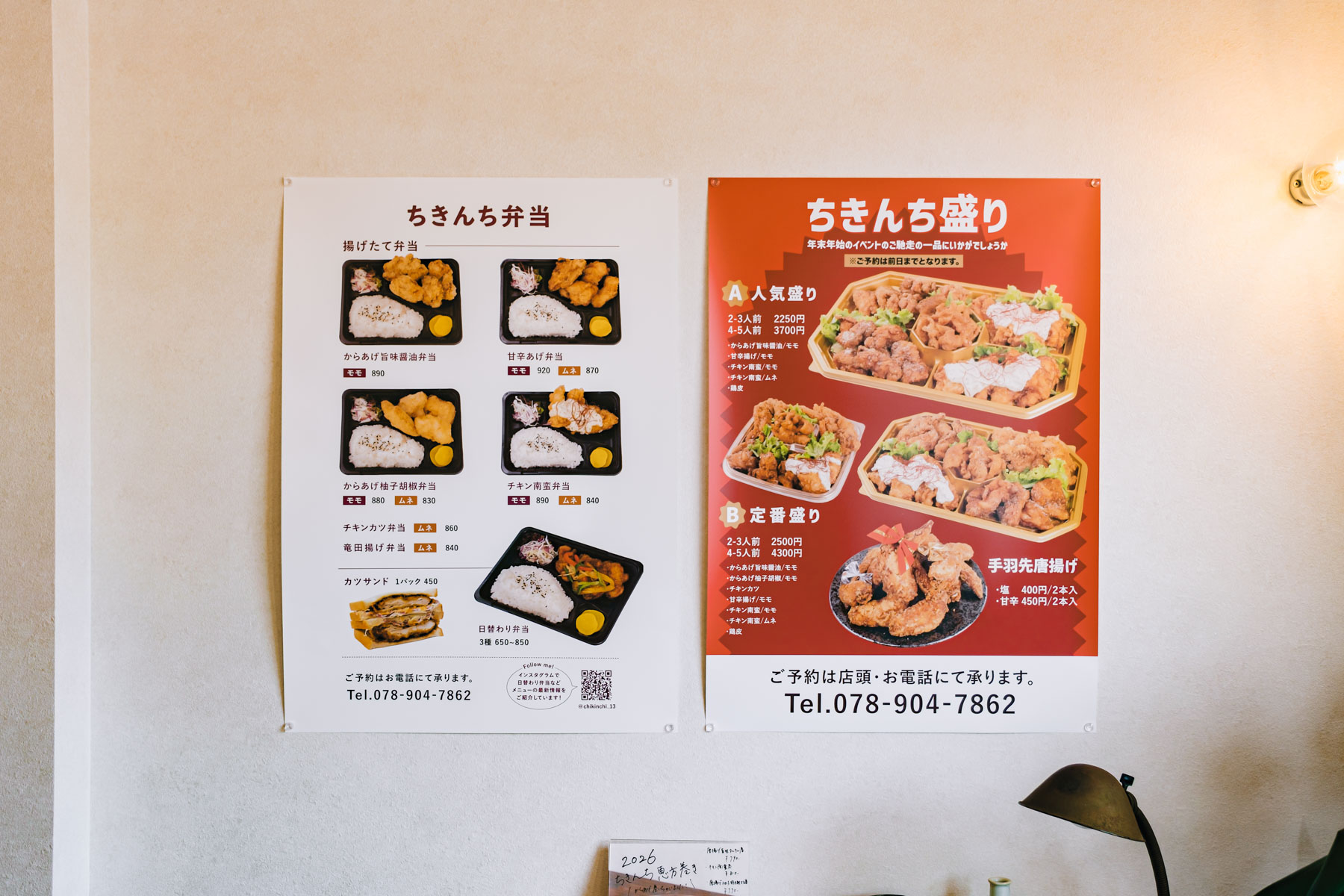 「食堂ちきんち」さんでは、からあげなどの単品やお弁当のテイクアウトもやっています。夕飯やお弁当のおかずなど色んなシーンに利用できそうですね。定番どころが入った盛り合わせ「ちきんち盛り」(前日まで電話で要予約)も人気です。