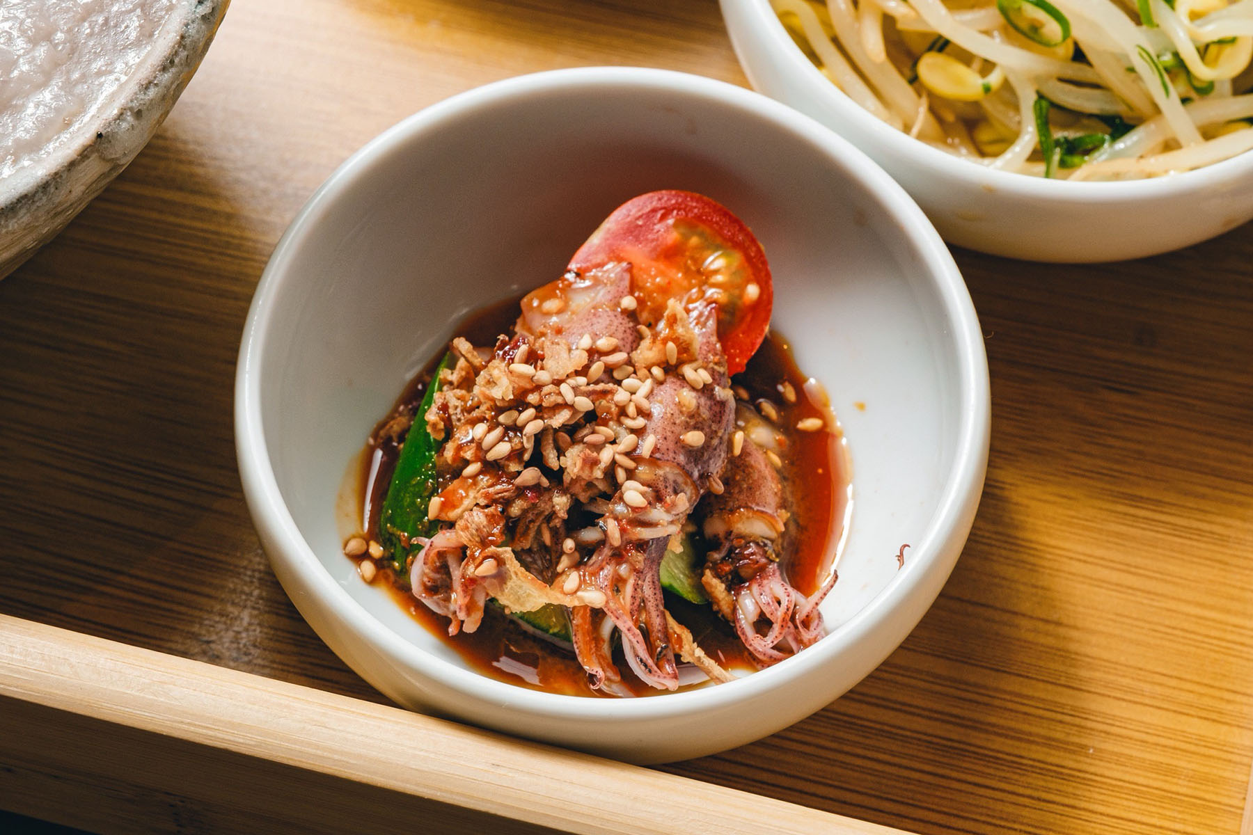 パクリと一口食べると、ホタルイカ特有の濃厚で甘い旨みと、特製ダレのピリッとした辛みが口の中で大爆発!さらに、たっぷりかかった白ごまの香ばしさと、下に敷かれたきゅうりのシャキシャキ感が絶妙なアクセントになっていて……もう、最高すぎます。