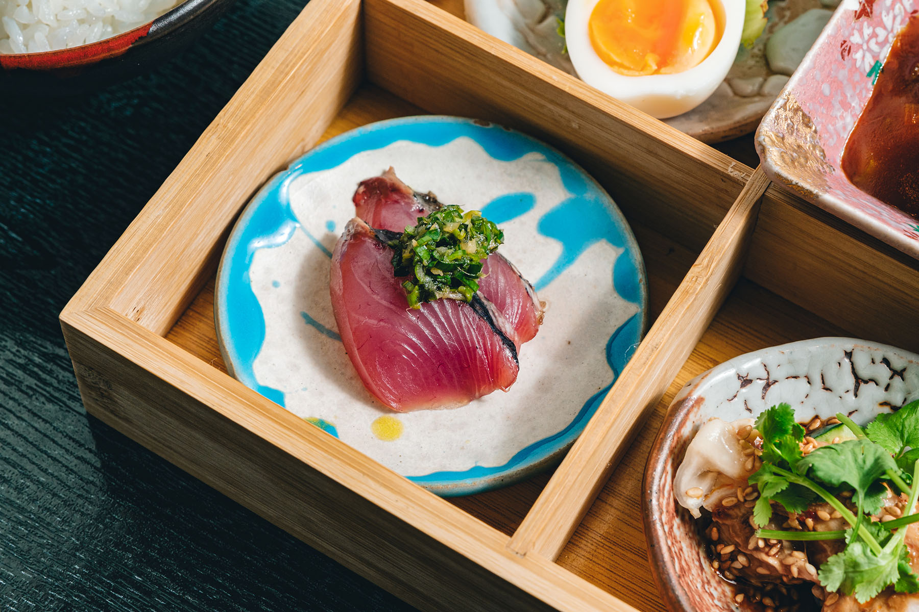 そして、今月の木箱の中でわたしが個人的に「激推し」したいのが、左下に鎮座する「初鰹 九条ネギの翡翠ソース」!