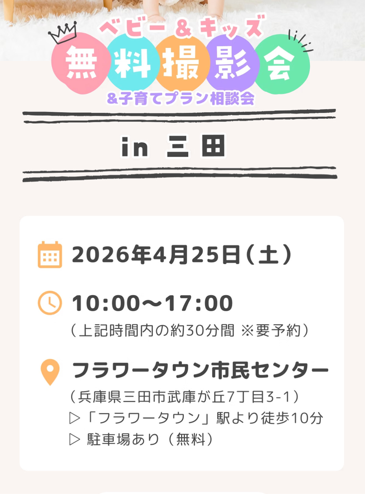 全国各地で大好評の「FOTOMARE」さんの無料撮影会が、ついに三田市にもにやってきます!