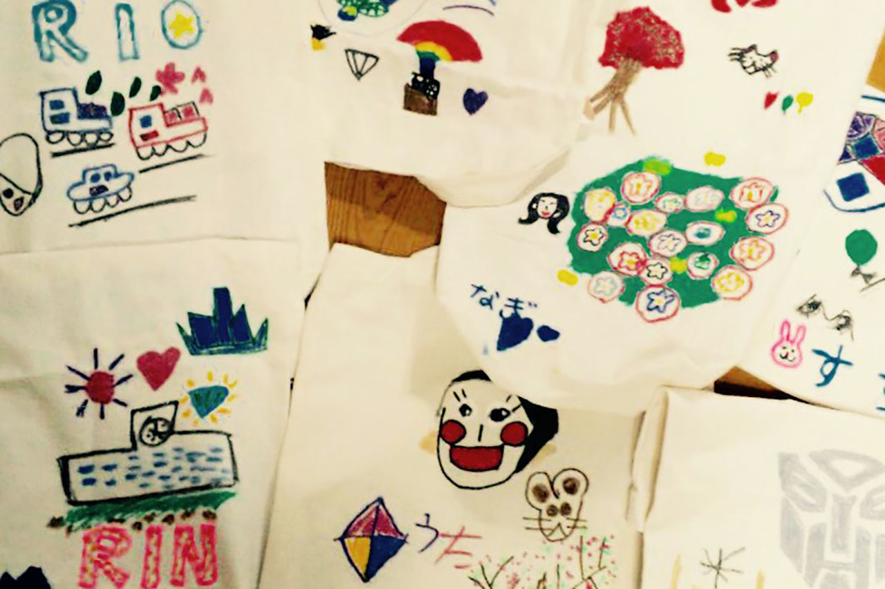 夏休み期間中に行われた「かばんにお絵描き」では、地元の子どもたちが思い思いに絵を描いていたそうです。外の駐車場にプールを出して水遊びを楽しんだ日もあったとか。